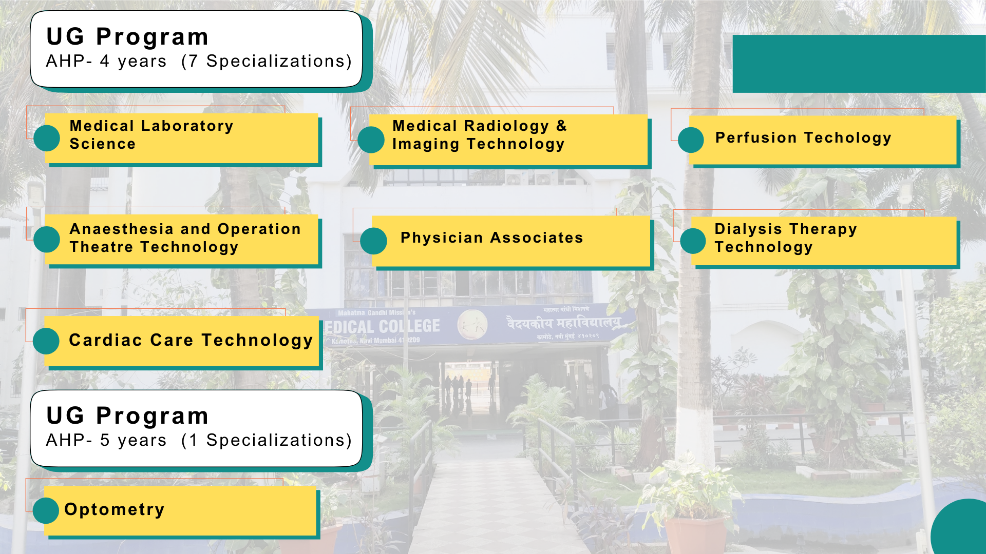 Two of its Medical Colleges at Aurangabad and Navi Mumbai were accorded the status of Deemed to be University and Mahatma Gandhi Mission Institute of Health Sciences (MGMIHS) started officially functioning in 2006.